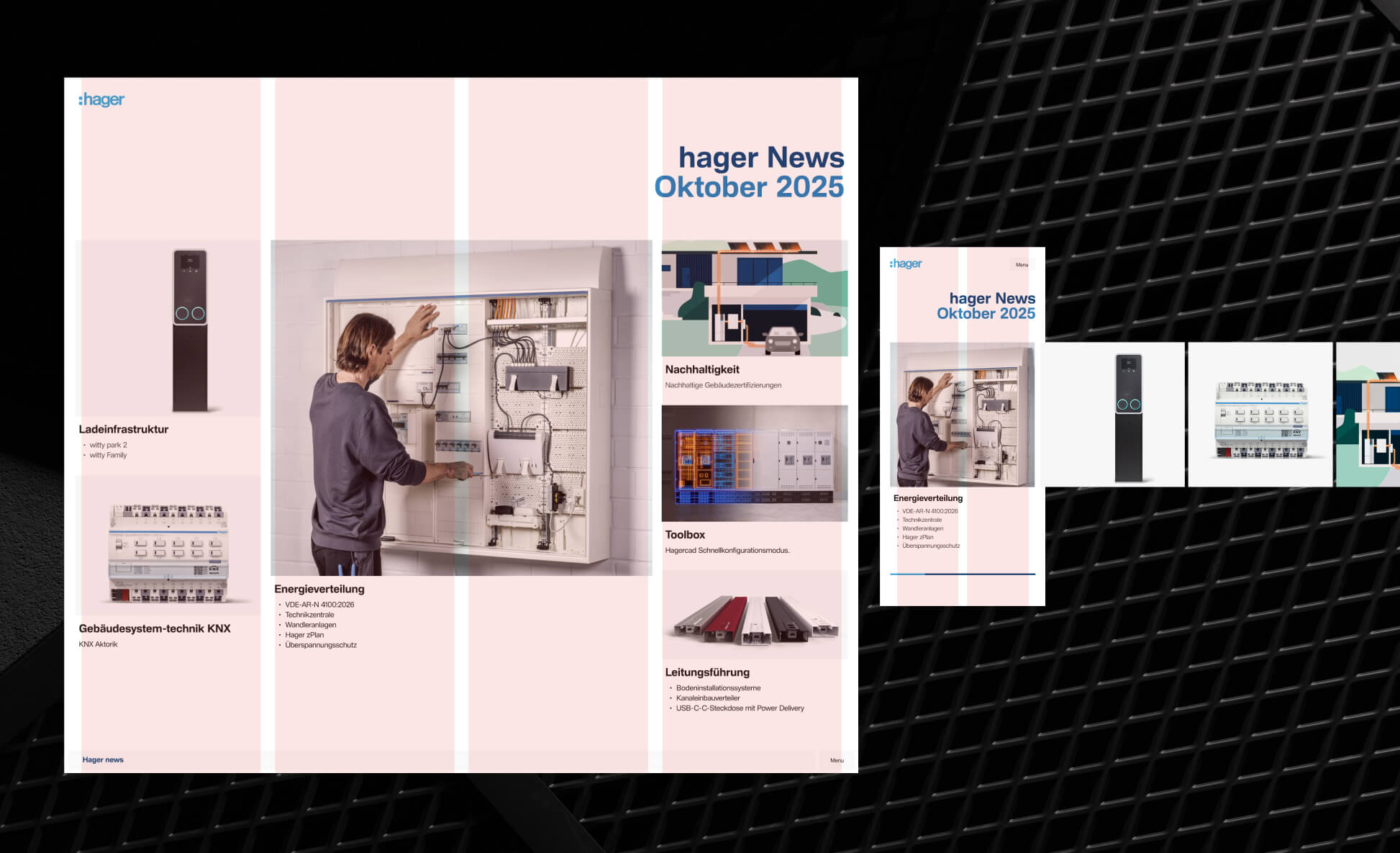Die Aufgabe: Ein zuvor als statisches PDF veröffentlichtes Kundenmagazin sollte in eine zeitgemäße, digitale Form überführt werden. Ziel war es, die Inhalte immersiver zu inszenieren und Hager digital erlebbar zu machen.